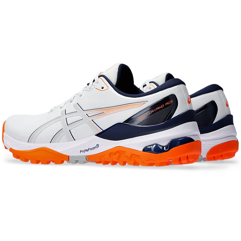 Your ace in the hole, every round. Inspired by ASICS running shoes, GEL-KAYANO ACE 2 features extra padding on the ankle and tongue for a soft feel. ASICS FlyteFoam provides lightweight shock absorption and plenty of support, while ASICS Gel Technology increases that shock absorption and is strategically placed for maximum comfort under the heel. Air mesh and TPU heels cradle your feet for a flexible yet supportive fit, plus a thin waterproof PU lining keeps them dry in wet conditions. Then the FG traction sole pattern and flex grooves place spikes exactly where they need to be for stability during your swing and grip while walking the course.